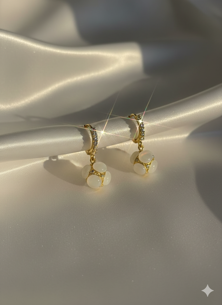 Glittering hoops cradle a cluster of pearly petals, forming a radiant orb of charm and sophistication. A celebration of craftsmanship and sparkle—perfect for festive flair and graceful evenings.