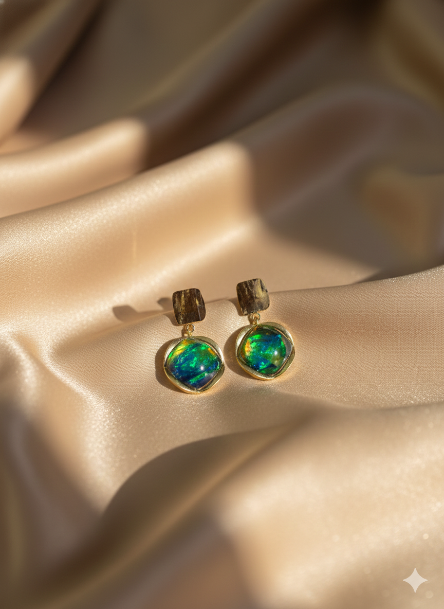 Rich, polished wood contrasted with an aqua-toned, radiant resin segment. A sophisticated statement piece.