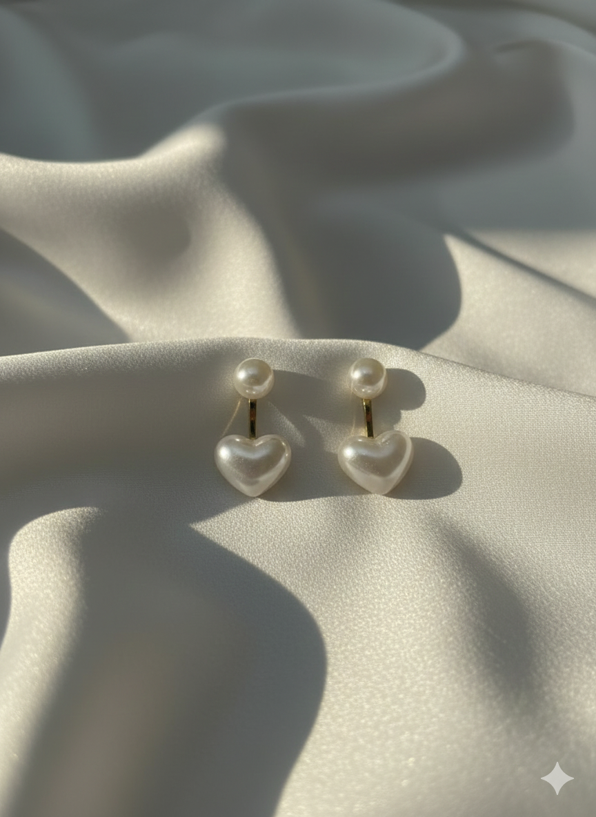A classic pearl stud meets a tender heart-shaped pearl, joined by a sleek gold bar—these earrings radiate love and elegance in every detail. Perfect for bridal moments, anniversary gifts, or simply wearing your heart with style.