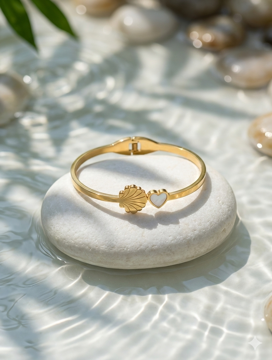 & Free ShippingA graceful blend of coastal charm and heartfelt elegance, featuring a gold seashell and white-inlay heart. Crafted to resist tarnish and shine through every moment.