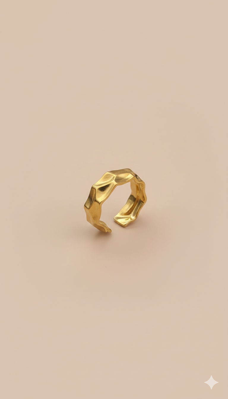 Raw elegance meets modern geometry in the Tessara Form—an open-ended gold ring sculpted with irregular facets that catch light like whispers of movement. A statement of individuality, texture, and timeless craft.