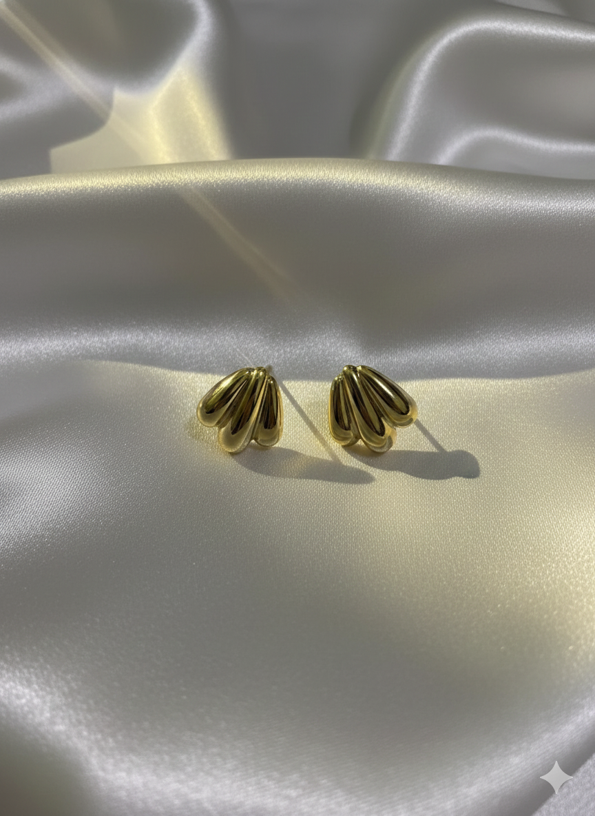 Three elongated teardrops unite in a radiant fan of polished gold, catching light with every turn. A bold yet graceful silhouette—perfect for festive elegance and catalog-worthy charm.